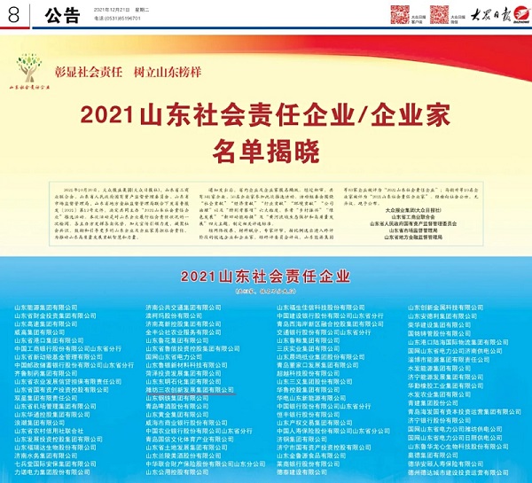濰坊農(nóng)創(chuàng)集團(tuán)榮獲“2021山東社會責(zé)任企業(yè)”稱號